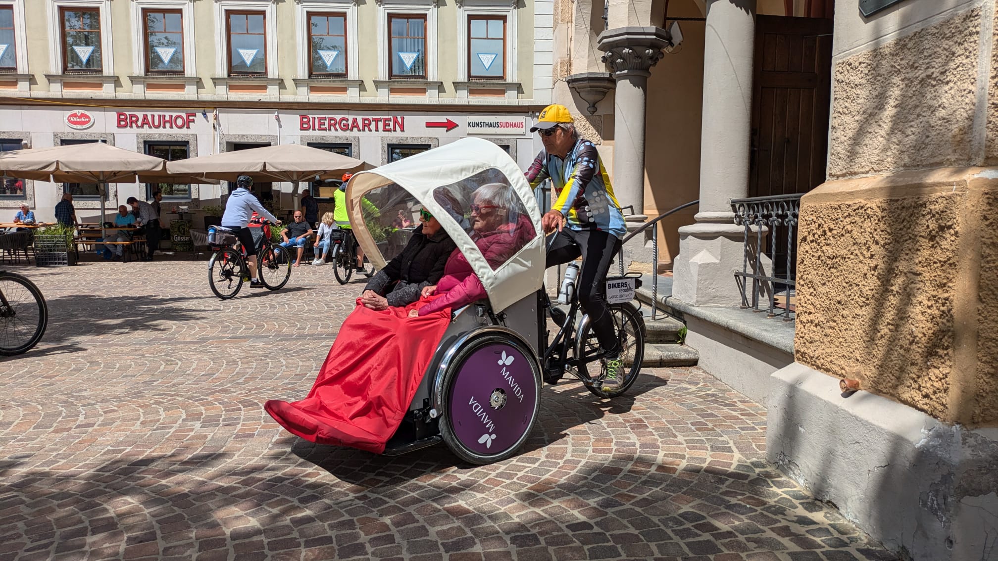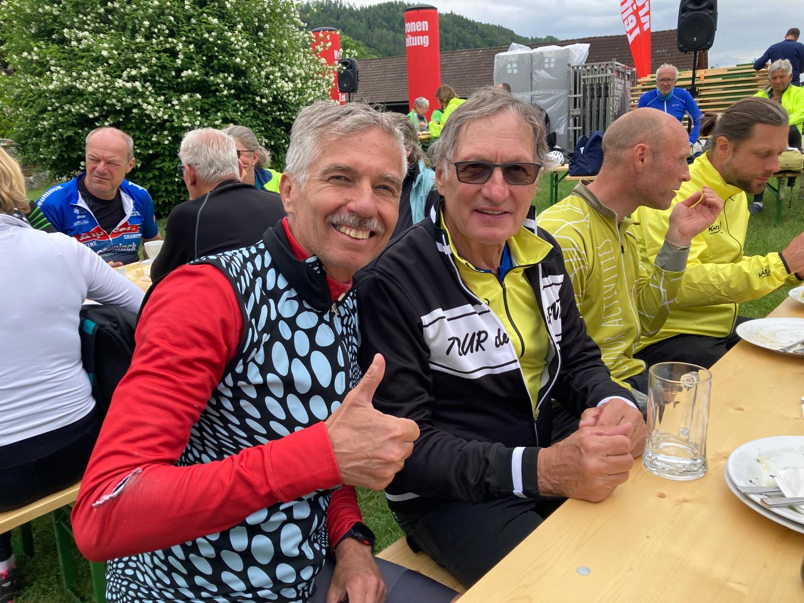 Kompletní servis se třemi, čtyřmi nebo jako pro nás pěti noclehy v kvalitních hotelech, jídlem, převozem zavazadel i doprovodným programem vyšel okolo 500 eur. Největší část členů pelotonu tvořili Rakušané, pak Němci, dvě desítky Čechů, Poláci, Italové, Slovinci. Až překvapivě povětšinou senioři na elektrokolech. Ovšem vybavení a na první pohled zkušení, i když třeba pomalejší. Nejstaršímu bylo devětaosmdesát…