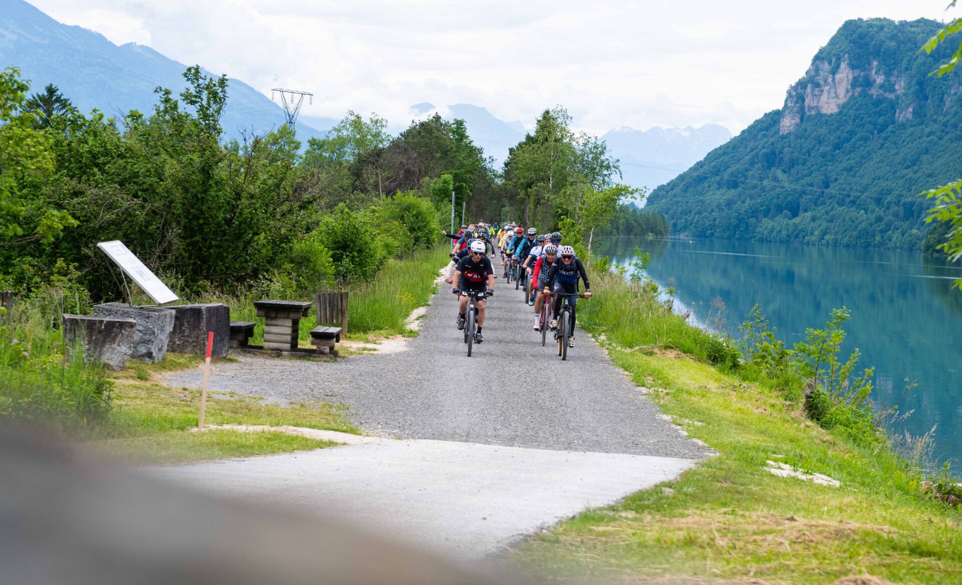Přitom trasy byly ideální pro svižné gravely, zdolala je i silnička, treková kola, celopéra sem byla zbytečně těžkotonážní. Pokud jste si ovšem nechtěli přidat traily u Ossiachu. O víkendu se přidalo jen na den nebo dva několik rodin i s dětmi. Trasy byly přehledně značené, přejezdy silnic chráněné policií a dobrovolníky. Zvládly by se zajisté i delší distance.